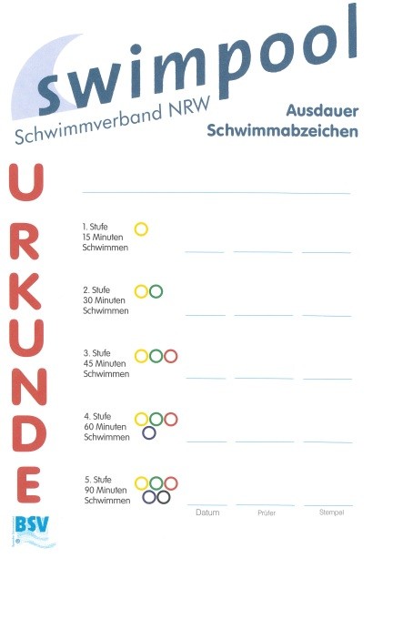 Der Schwimmverband NRW initiiert mit dem Ausdauerschwimmabzeichen eine neue Marke im Bereich der Schwimmwelten. Erklärte Absicht ist es, den Einstieg in ein regelmäßiges Herz-Kreislauftraining im Bewegungsraum Wasser für alle Altersstufen und Zielgruppen zu erleichtern und zu dokumentieren.